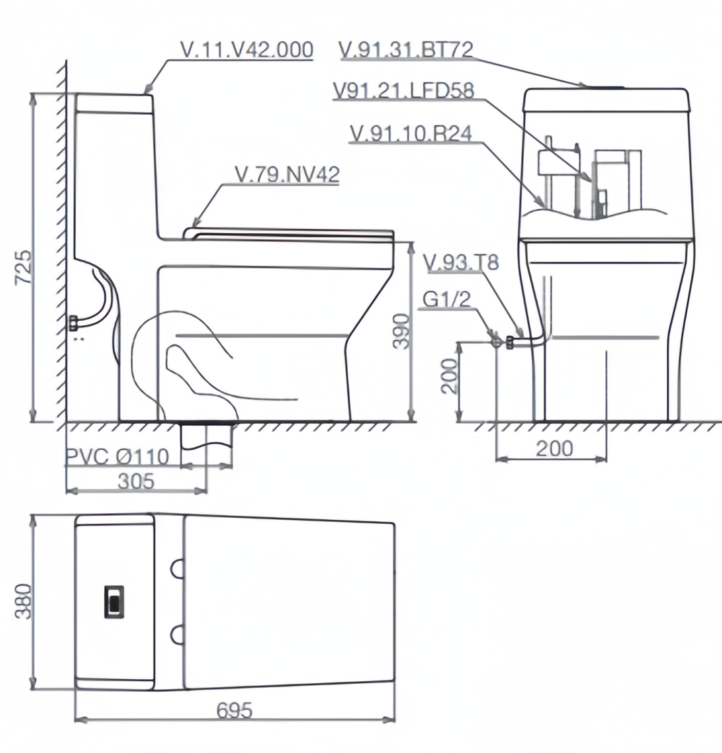 Dưới đây là thông tin chi tiết về sản phẩm bàn cầu một khối V42: