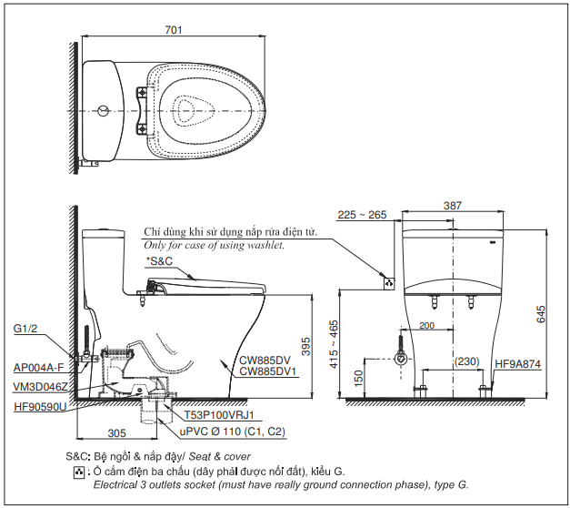 Bàn cầu MS885DT2 nắp đóng êm TC393VS thiết kế nhỏ gọn là sự kết hợp hoàn hảo giữa thiết kế sang trọng, công nghệ tiên tiến và tính năng tiện ích: