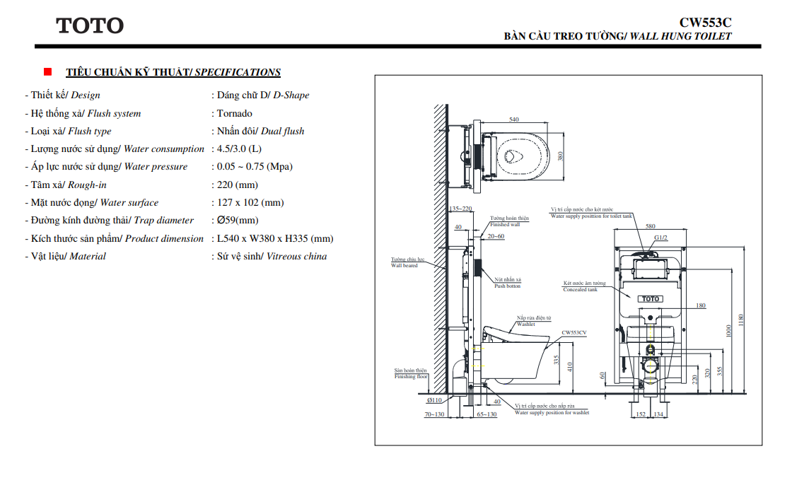 - Công nghệ xả xoáy mạnh mẽ và êm ái, giúp làm sạch mọi vết bẩn mà vẫn tiết kiệm nước với mức xả chỉ 4.5L và 3L.