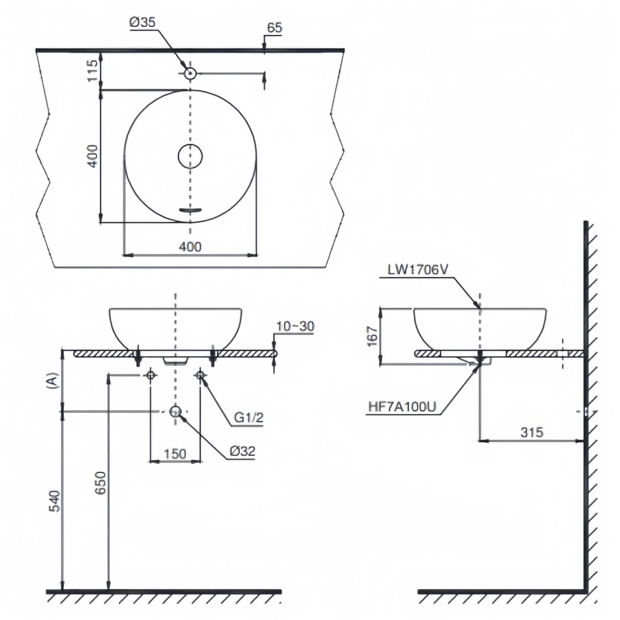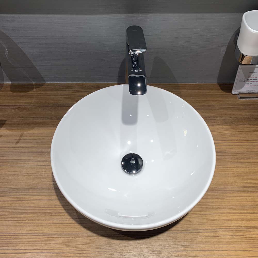 Kích thước và tính năng: Có lòng chậu sâu để ngăn nước văng ra ngoài, lỗ bắt vòi Ø35 mm dễ lắp đặt và lỗ xả tràn đảm bảo an toàn trong quá trình sử dụng.