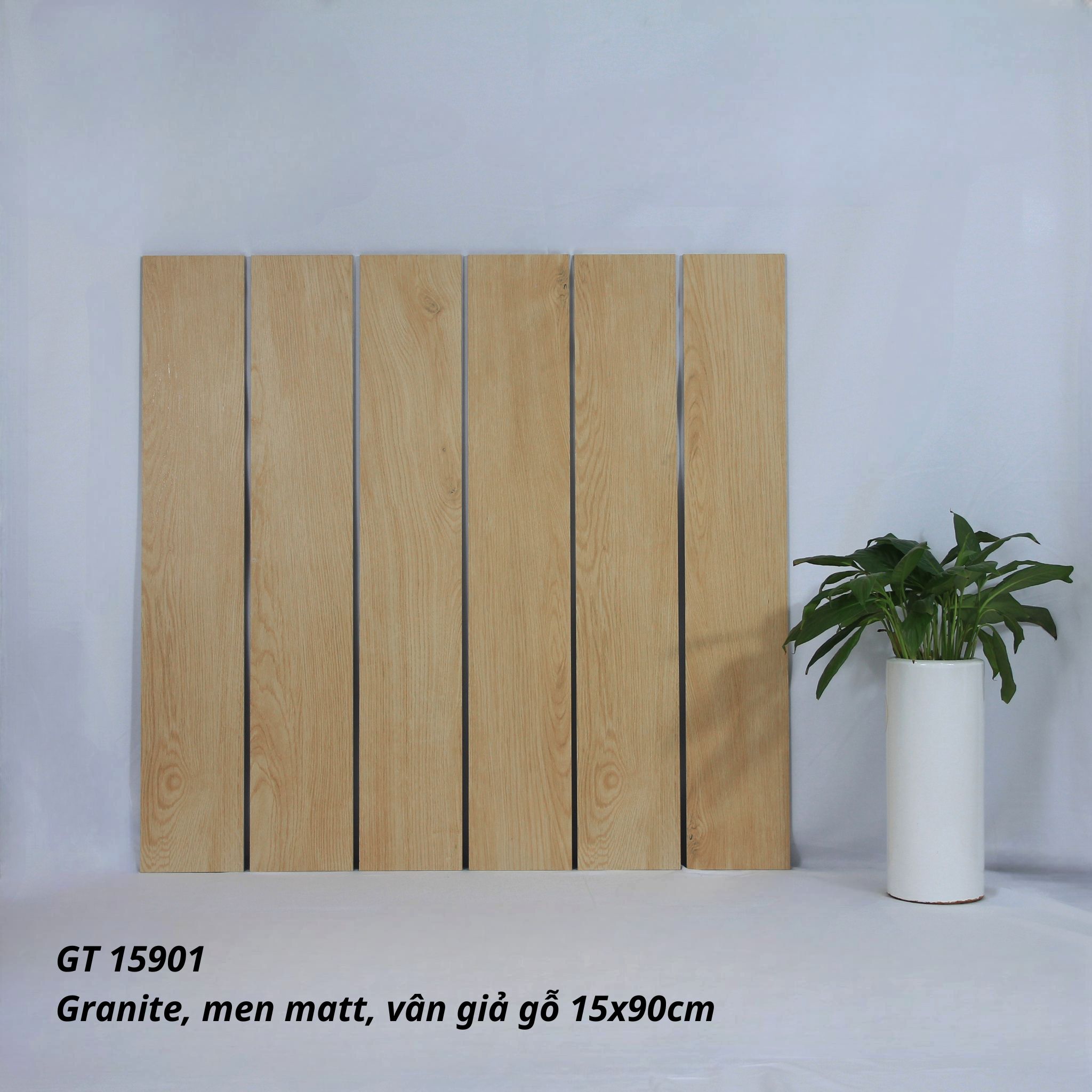 Gạch GT15901 được cắt theo kích thước 15x90cm, với kích thước đó gạch mô phỏng các thẻ gỗ chân thật, tạo ra vẻ đẹp sang trọng, hiện đại và gần gũi với thiên nhiên.